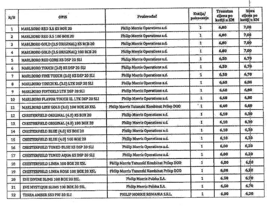 Nove maloprodajne cijene odnose se na više brendova koji su dostupni na tržištu Bosne i Hercegovine, a potrošači će ih moći vidjeti na prodajnim mjestima od navedenih datuma.